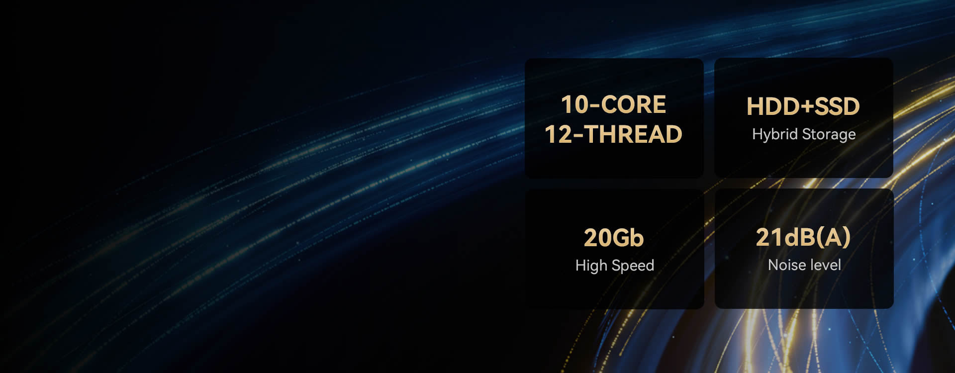Unmatched Performance Redefined: The F4-424 Max NAS storage outperforms its predecessor, offering unmatched power in a 4-bay NAS. Equipped with a Core i5 1235U 10-core 12-thread processor (up to 4.4GHz) and Iris Xe Graphics (up to 1.2GHz), it ensures superior performance. With 8GB DDR5 4800MHz memory, two 10G Ethernet ports, and dual M.2 NVMe slots for hyper caching, the F4-424 Max NAS server maximizes storage efficiency. Ideal for small and medium businesses handling virtualization and database tasks, it also features AES NI hardware encryption for added security.