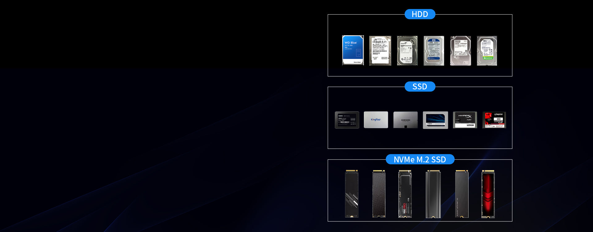 Ideal Solution for Hot and Cold Data: Tailor your storage setup to your data’s needs and usage patterns. Leverage the large capacity advantage of mechanical hard drives and the high-speed read/write performance of M.2 SSDs. Users have the flexibility to manually select where to store their data based on type and frequency of usage, optimizing storage efficiency and access speed. This approach ensures swift access to hot data stored on high-speed SSDs, while cold data is stored economically and efficiently on HDDs.