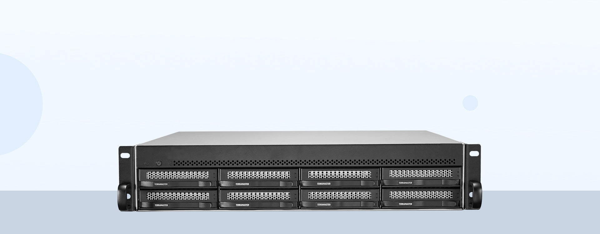 The NAS server 2U 8-Bay Short Depth Rackmount U8-450 is powered by an Intel Atom C3558R quad-core processor, with main frequency of up to 2.4GHz. It also features 8GB DDR4 dual-channel memory (expandable up to 32GB); dual SFP+ 10GbE ports; and dual RJ45 2.5GbE ports, providing up to 20Gb transmission bandwidth through Link Aggregation. In addition, the U8-450 features dual M.2 NVMe SSD slots and TerraMaster's Hyper Cache SSD cache acceleration technology, which can improve the overall performance of the NAS.