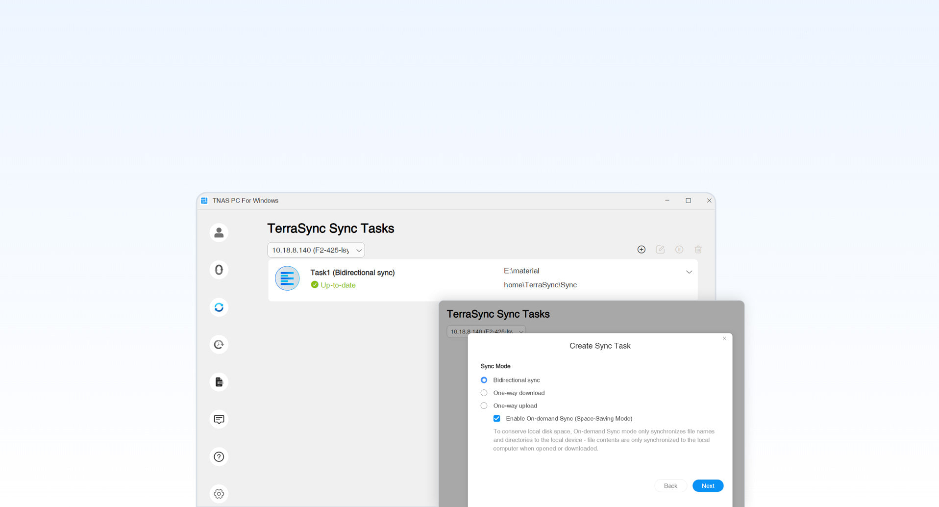 TerraSync is an outstanding multi-terminal synchronization application that supports file synchronization between TNAS and TNAS, TNAS and Windows computers, TNAS and Mac computers, as well as TNAS and Linux computers. Users only need to flexibly configure synchronization strategies to effortlessly achieve efficient cross-platform and cross-device file synchronization.