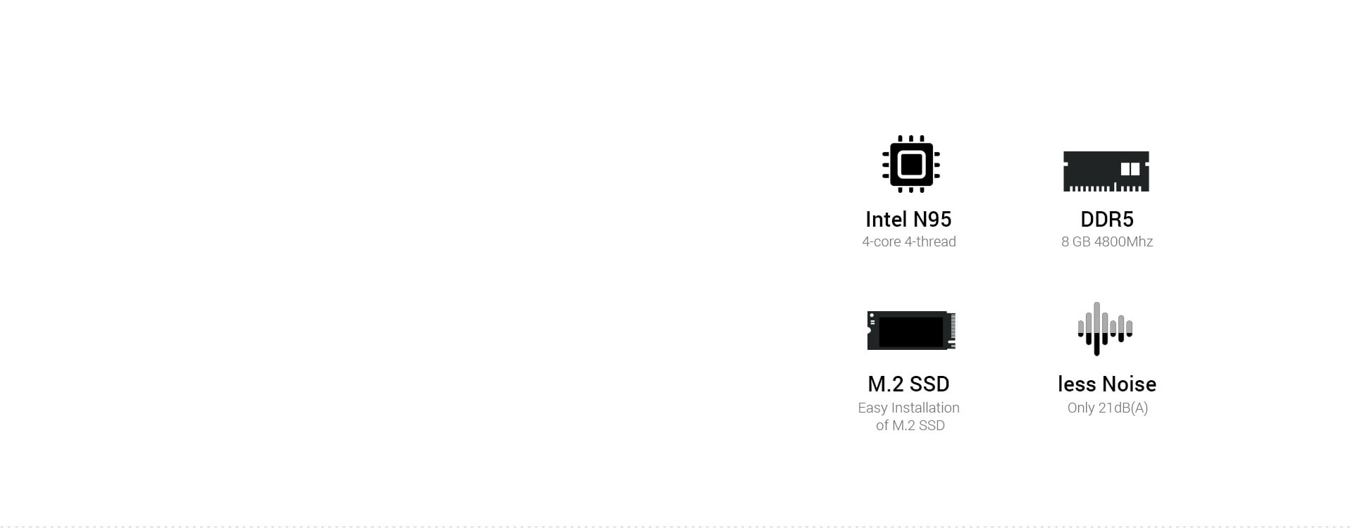 | Noise Level | 21.0 dB(A) (Using 2 SATA HDDs/SSDs in standby mode; Test environment noise: 17.3dB(A); Test distance: 1m) |