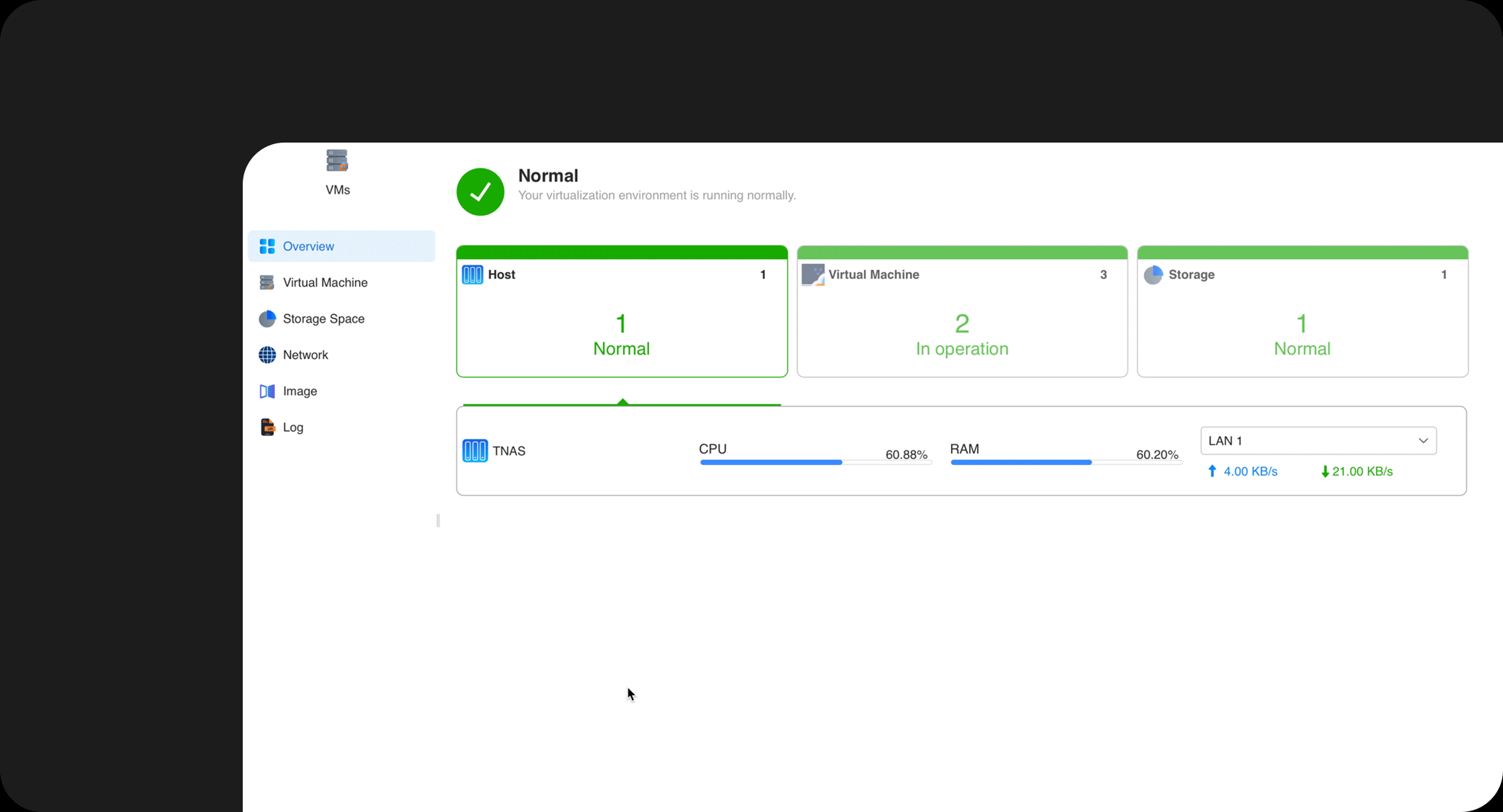 TOS 7 adds VM deployment and management. Through virtualization technology, you can achieve application isolation, system integration, functional expansion, and flexible deployment. Maximize the hardware potential of your NAS to meet your diverse needs, from home entertainment to enterprise applications.