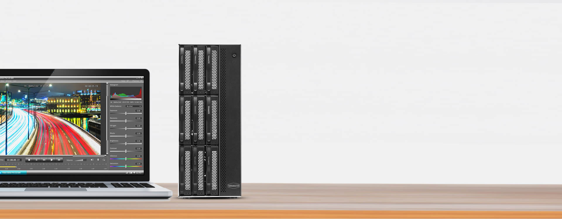 En construisant un réseau 10 gigabits, plusieurs postes de travail Windows/Mac peuvent se connecter simultanément au stockage NAS T9-450, rendant les opérations collaboratives telles que l'édition en ligne de matériel 4K multipistes, les effets spéciaux, la composition vidéo, ainsi que l'importation et l'exportation de clips plus rapides et plus efficaces. Cela améliore considérablement l'efficacité du travail et réduit le temps de production.
