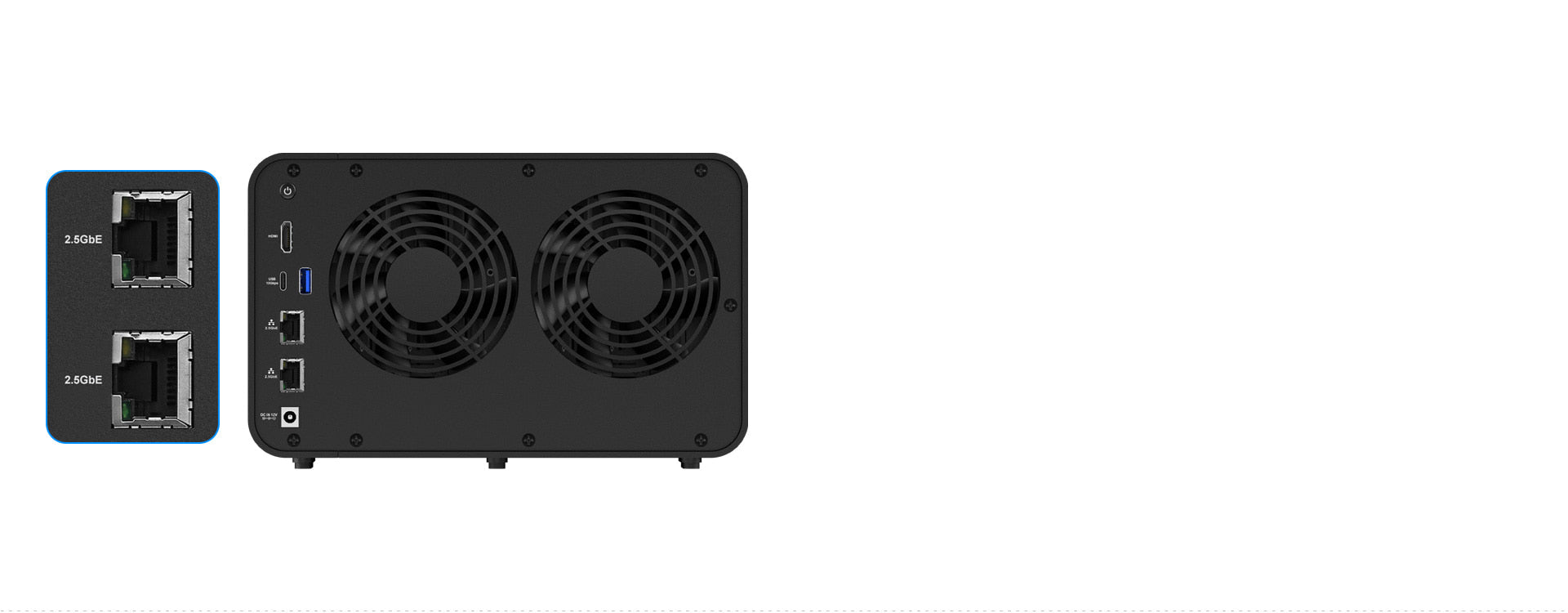 고속 연결: F6-424 NAS 케이스는 듀얼 2.5GbE 인터페이스를 탑재하여 283MB/s의 선형 데이터 전송 속도(NAS 전용 HDD 18TB x 4, RAID 0으로 테스트)를 제공합니다. 링크 어그리게이션(Link Aggregation)은 최대 5Gb의 네트워크 대역폭을 제공하여 다중 사용자 및 높은 동시 파일 액세스에 이상적입니다. 듀얼 USB 3.2 10Gbps 인터페이스를 통해 NAS와 외부 장치 간의 데이터 전송이 더욱 빨라집니다. F6-424는 RAID 0/1/5/6/10/JBOD/Single, TRAID, TRAID+ 등 다양한 RAID 유형을 지원합니다.