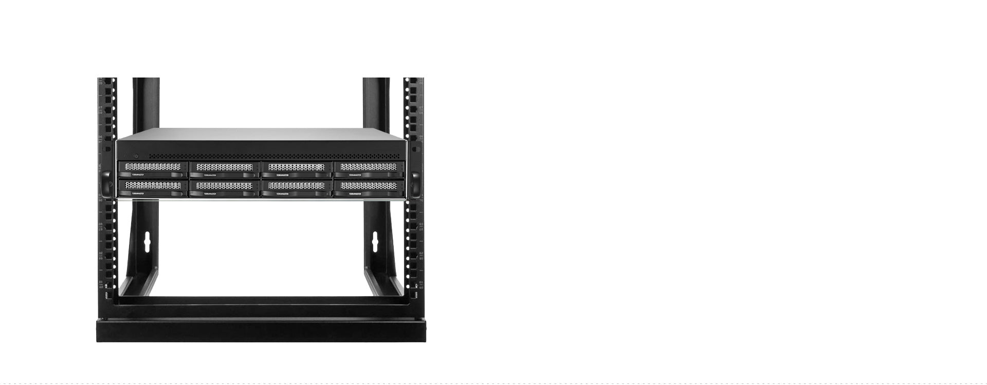 紧凑型机架式服务器: U8-450 NAS 采用紧凑型 2U 机架式机箱,深度仅为 384 毫米(15.1 英寸),重量仅为 6.8 公斤,可优化空间利用率。其安装简便,无需导轨,可与大多数双列机柜、小型壁挂式机柜以及机房、储藏室、楼梯间和办公室等各种场所兼容。