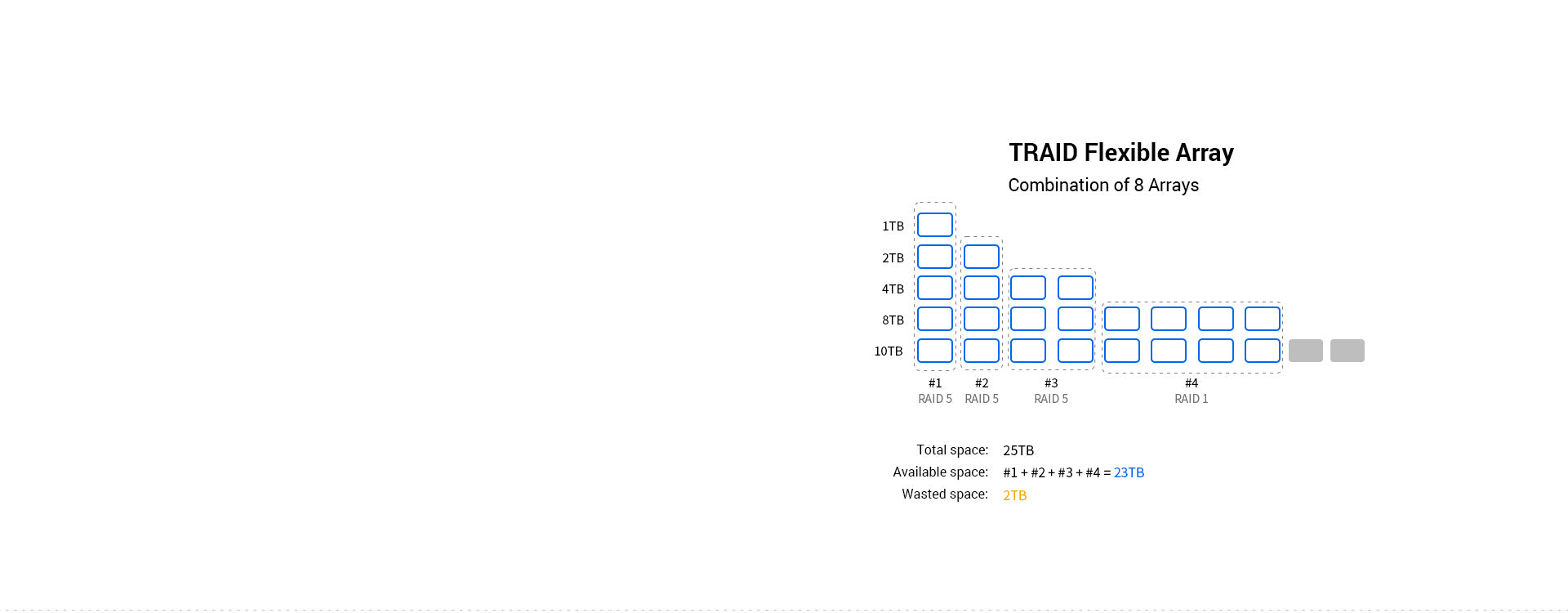 | 以更大容量的硬盘扩展卷容量 | TRAID, RAID 1,RAID5,RAID 6,RAID10 |