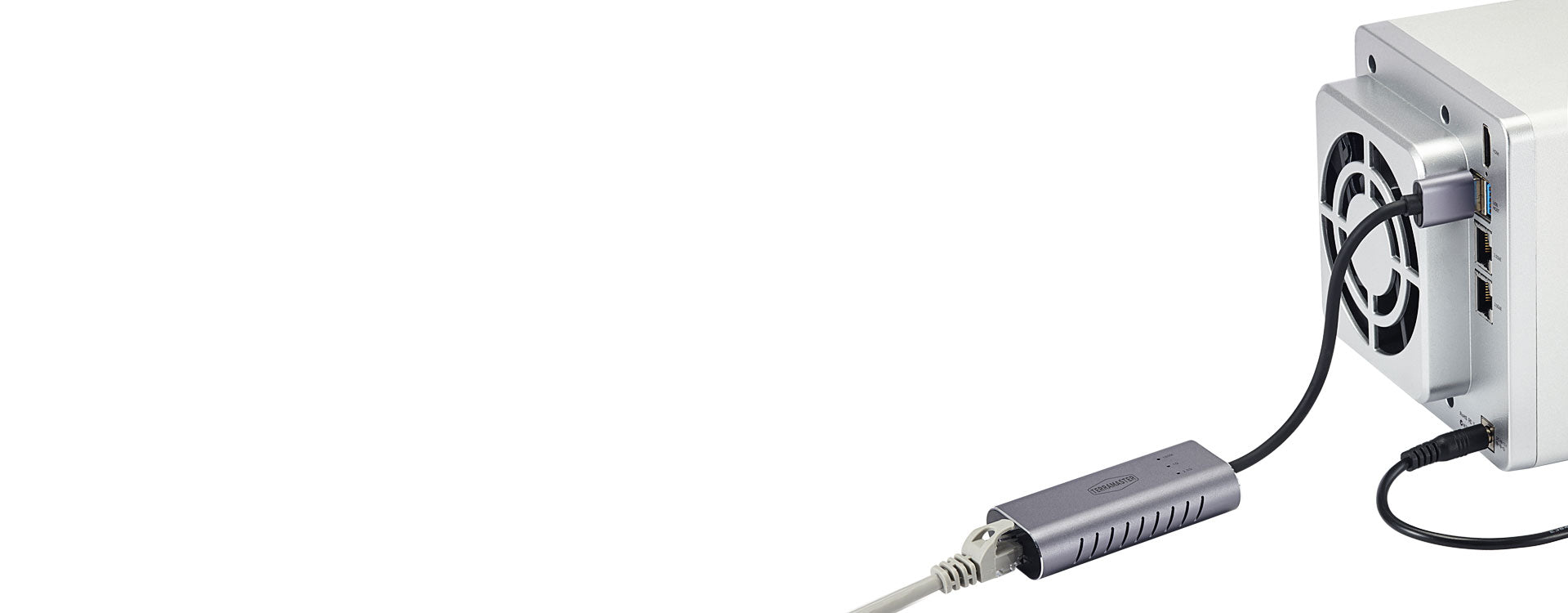 The A-USBLAN-2.5G is a 2.5Gb USB to Ethernet adapter specially adapted for TerraMaster TNAS devices. Connect the Ethernet adapter to a TNAS's USB 3.0 host to obtain up to 2.5G bandwidth on your TNAS. It is backward compatible with 10/100/1000Mbps network environment, and supports IEEE 802.3, IEEE 802.3u, IEEE 802.3ab, IEEE802.3bz network standards; Plug and play, no need to install drivers. You can also use this Ethernet adapter with your computer, compatible with Windows 8/10/11 and Mac OS.