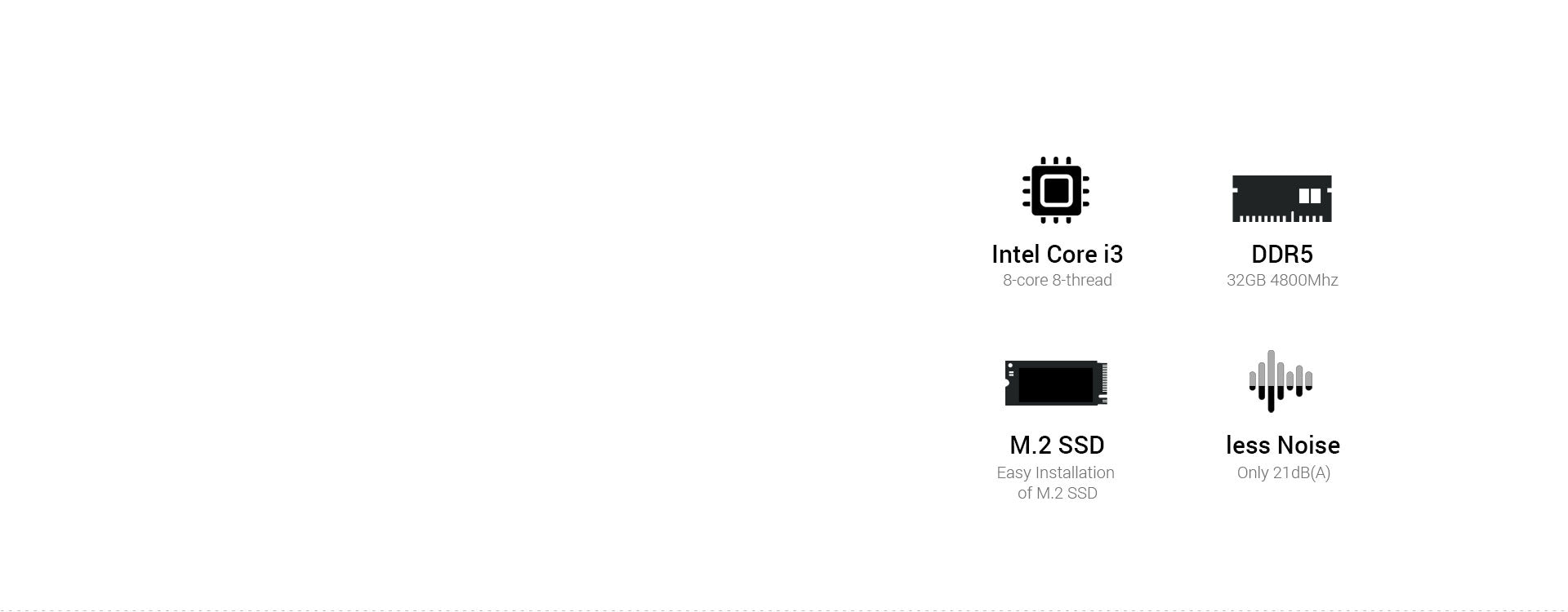Peak Performance 4-Bay NAS: Unleash the power of the F4-424 Pro NAS storage, featuring a Intel N305 CPU at 3.8GHz (turbo), integrated UHD GPU at 1.25GHz, 32GB DDR5 4800MHz memory (non-ECC, non-upgradable), dual 2.5G Ethernet ports, and dual M.2 NVMe slots for SSD caching. An ideal peak performance NAS storage solution for small and medium-sized business users.