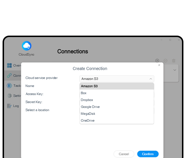 CloudSync integra una variedad de funciones principales de sincronización de unidades en la nube en una sola aplicación, incluidas Google Drive, OneDrive, Amazon S3, Dropbox, Baidu y Alibaba Cloud. Por lo tanto, solo necesita administrar una aplicación para lograr una variedad de funciones de administración de sincronización de unidades en la nube.