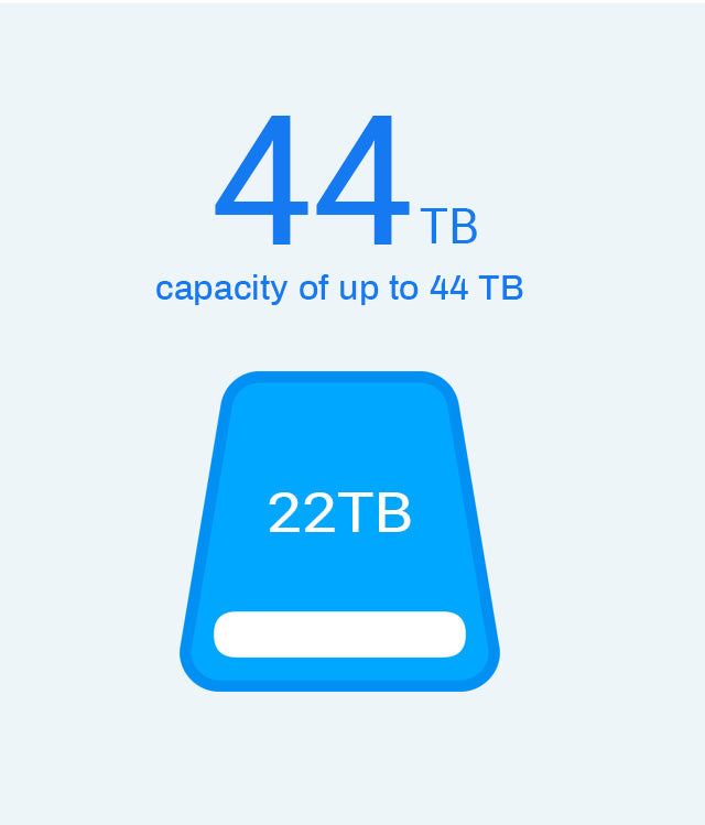 | Maximum Internal Raw Capacity | 44 TB (22 TB drive x 2) (Capacity will vary along with the RAID type) |