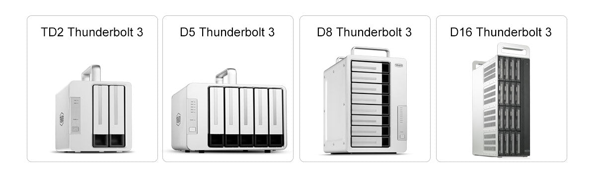 TerraMasterは、Thunderbolt 3高速伝送インタフェースを備えた各種の2~16ベイのストレージ製品で、4K動画の高速でスムーズな送信、再生、オンライン編集に対応します。これらの製品は超大容量によって関連のワークロードを処理することで、共同作業に適した効率的な高速共有環境を作ります。
