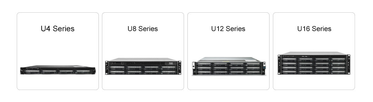 • X86ソリューションベースの高性能Intel XEONプロセッサーを搭載した3Uと4Uのモデル。高性能、高安定性のサービスとシステム統合を必要とする企業を想定。