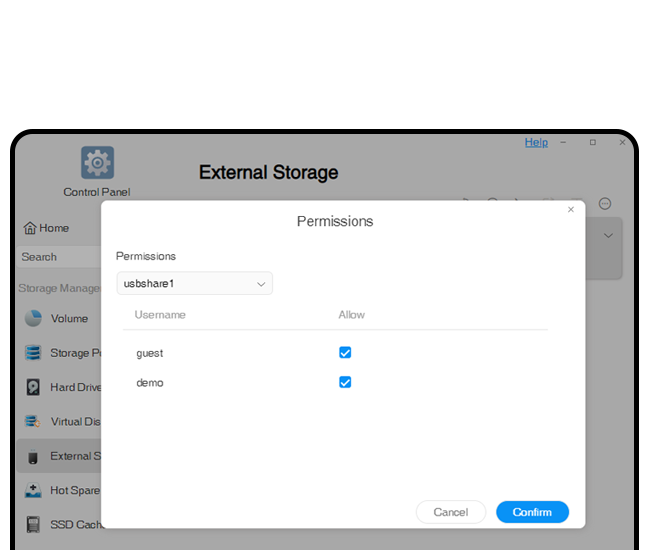 新しいUSB権限管理機能では、USBデバイスにアクセスする権限を持つユーザーを管理者が指定し、USBストレージスペースの利用率を高めるとともにデータセキュリティを保護します。
