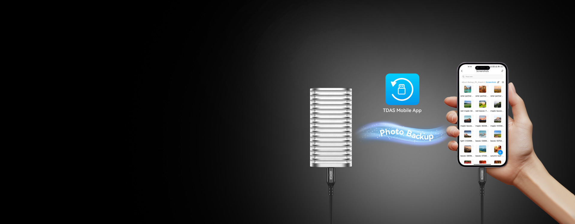 オールインワンバックアップソリューション: このM.2 NVMe SSDエンクロージャーをバックアップハブに変革。付属の「TDAS Mobile App」でiOS/Android端末の写真・動画を手軽にバックアップ可能。さらに「TPC Backupper」ソフトウェアによるWindowsのスケジュールバックアップ機能を標準装備。