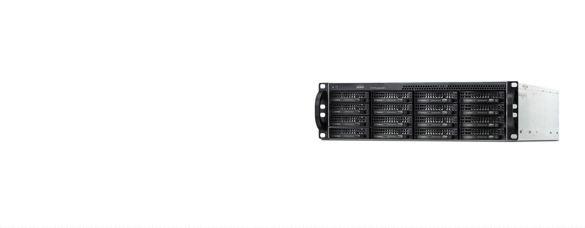 - [最大1PBの驚異的な容量] 複数のハードウェアRAID:RAID 0/1/5/6/10/50、JBOD、シングル。最大310TB(20TB x 16、RAID 0時)のストレージ容量をサポート。ハードドライブは付属していませんので、必要に応じてご購入ください。3.5インチSATAディスクと2.5インチSSDの両方に対応しています。その他のストレージデバイスはThunderbolt 3経由でデイジーチェーン接続できます。つまり、6台のD16 Thunderbolt 3ユニットを接続すれば、1PBという膨大なオンサイトストレージを実現できます。