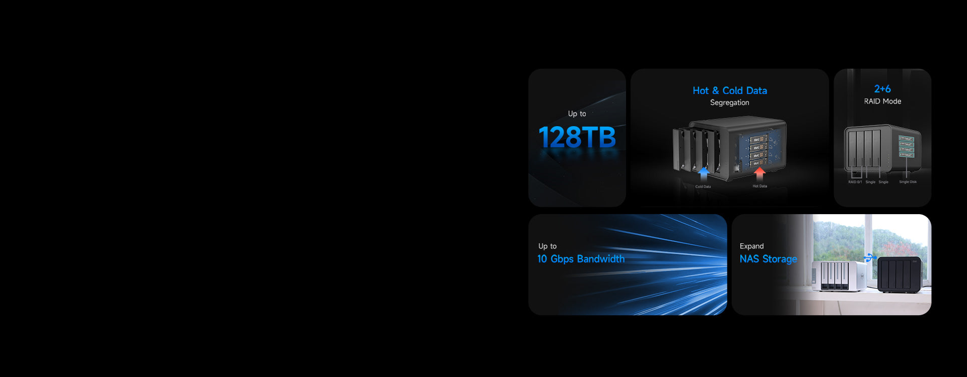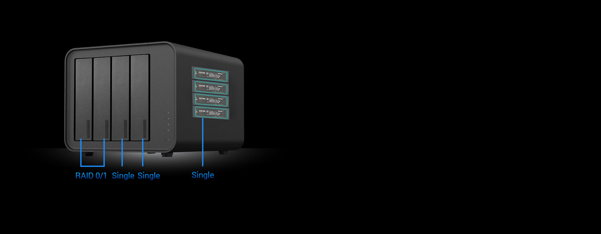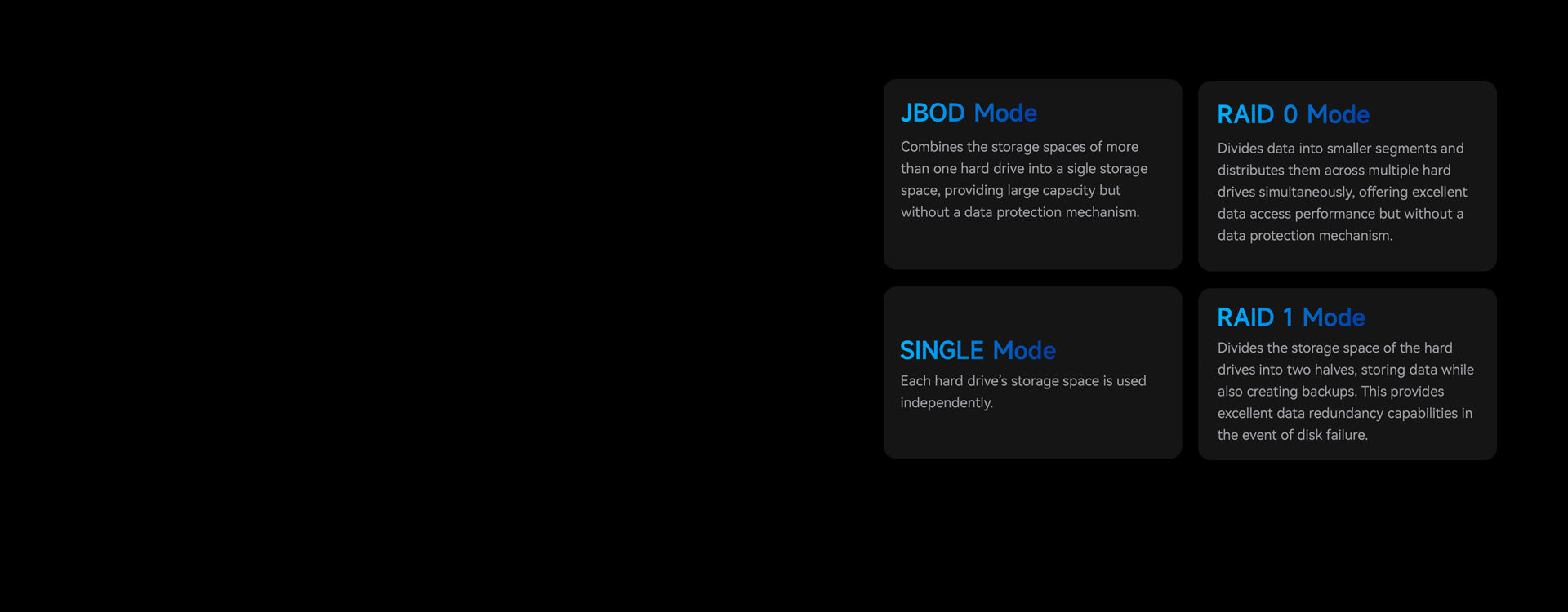 RAIDs Supported | SINGLE DISK,JBOD,RAID 0,RAID 1(Only HDD1 and HDD2 support RAID array creation,the rest operate in Single mode.) |