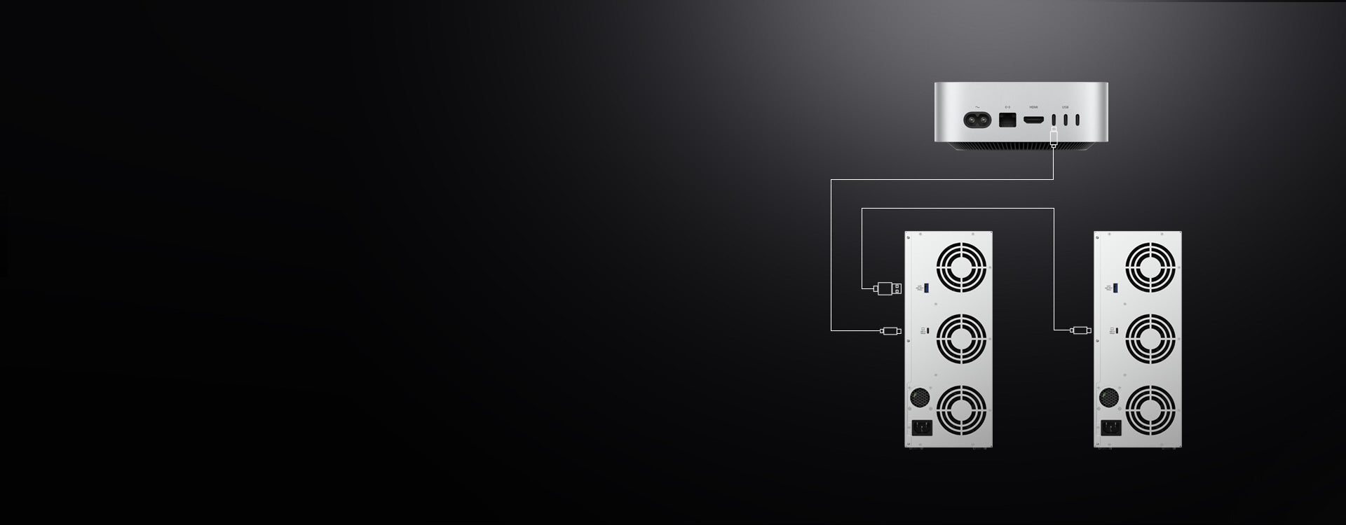 Plug and Play, Highly Compatible: The D9-320 DAS storage is a plug-and-play device that doesn't require drivers to work. It is highly compatible with MAC, Windows, and Linux operating systems. It has a USB Type-C interface and comes with two USB cables (1 x USB type C-C cable, 1 x USB type A-C cable). The device is compatible with various computer interfaces, including USB 4.0, USB 3.2, USB 3.1, USB 3.0, Thunderbolt 5 , Thunderbolt 4, and Thunderbolt 3.