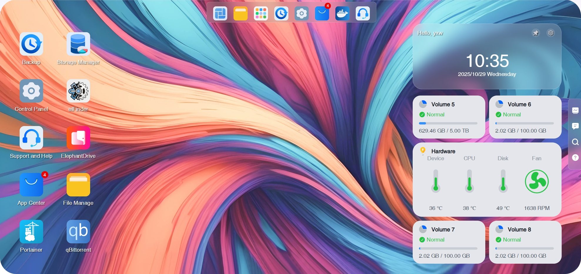 In TOS 7, the file management application has been fully upgraded and optimized. "My Files" and "Desktop" functions have been added to the user space, supporting remote file mounting. The intuitive graphical management interface lets you handle storage, addition, deletion, modification, and queries with ease.