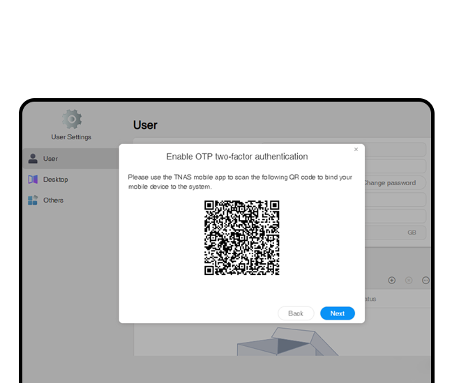 Активировать функцию входа по одноразовому паролю могут как системные администраторы, так и обычные пользователи. Чтобы настроить вход по одноразовому паролю, необходимо привязать к системе TOS как минимум одно мобильное устройство, а также установить мобильное приложение TNAS mobile, разработанное TerraMaster специально для TOS 5.