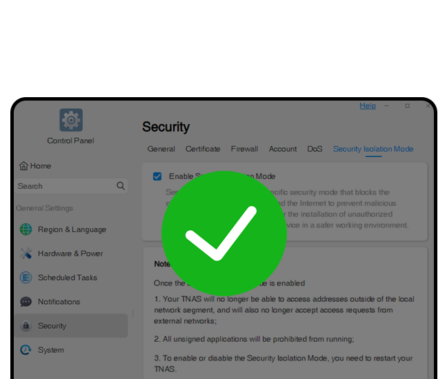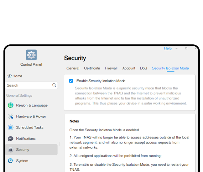 当前黑客及勒索病毒在全球肆虐,大量客户珍贵的数字资产受到前所未有的威胁。TOS 5 独有的安全隔离模式能为用户提供一个安全可靠的运行环境,隔离外部风险,保护数字资产免受侵害。