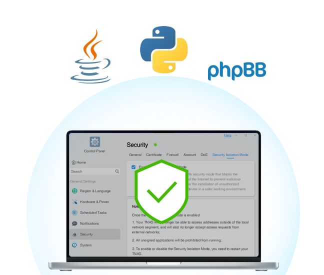 任何基于Java、php、Python的代码都将被阻止执行,有效防止系统被注入恶意代码以威胁到数据安全。