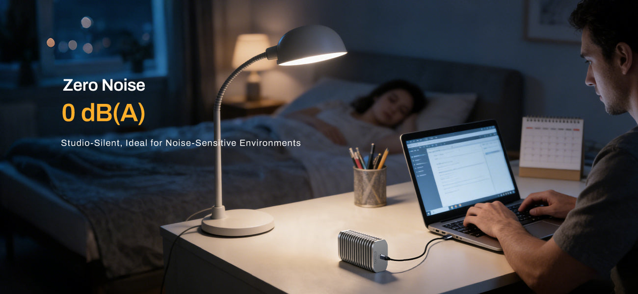 Designed for fanless, quiet operation, the D1 SSD Pro features a full aluminum body that acts as an efficient heatsink, rapidly absorbing and dissipating heat. Even under heavy, sustained loads—like large file transfers or video editing—its extensive cooling surface maintains an ideal working temperature of approximately 36–49°C to prevent thermal throttling. This ensures quiet confidence, reliable, high-speed performance so you can focus entirely on your work.